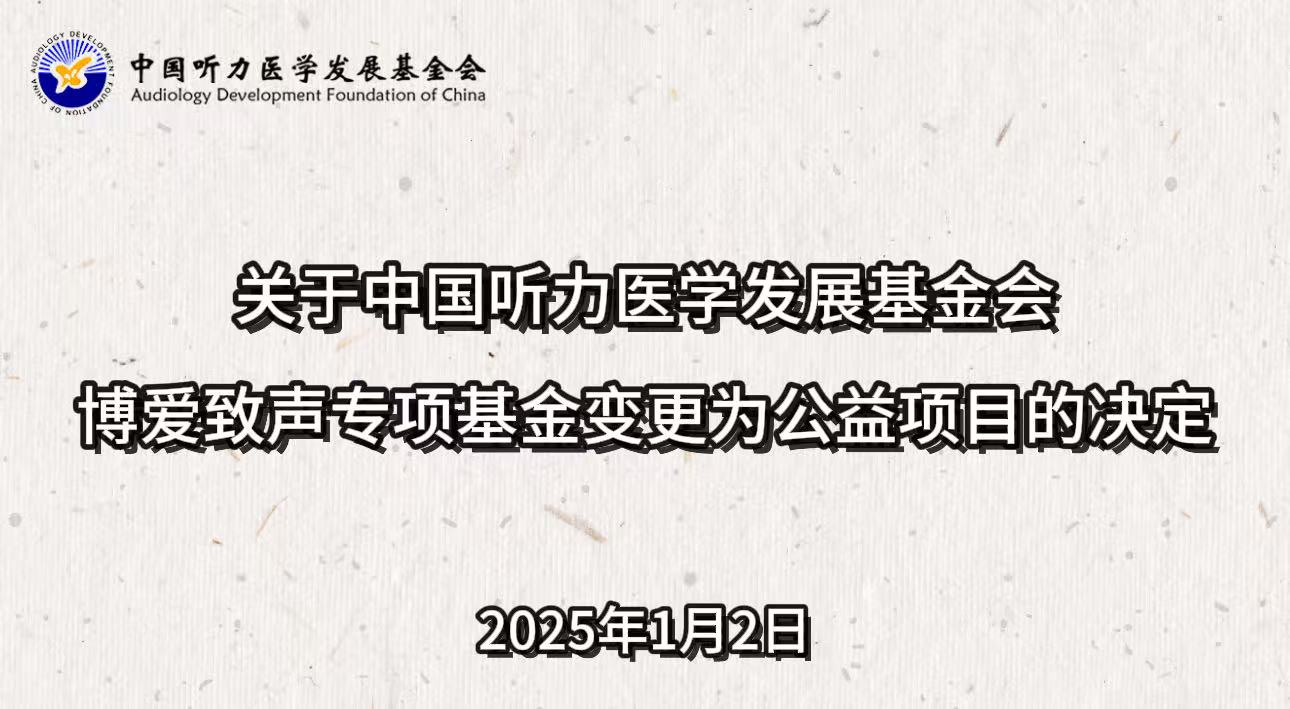 关于中国听力医学发展基金会博爱致声专项基金变更为公益项目的决定