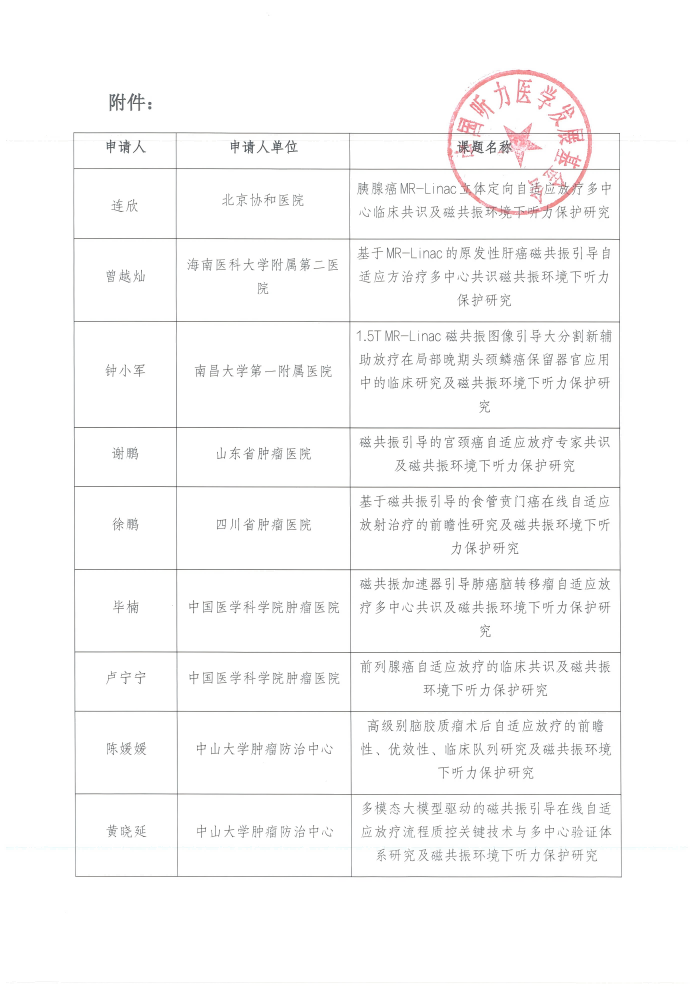 "益耳行动-听力及相关疾病癌变公益项目"--肿瘤放射治疗与听力保护临床研究 评审结果公示