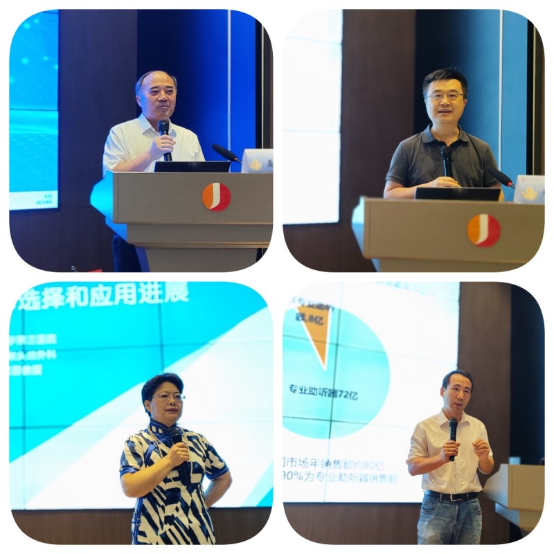 马芙蓉教授(中国听力医学发展基金会第六届专家指导委员会主任委员,北医三院)介绍了鼓膜修补材料的演变和发展,郗昕教授(中国听力医学发展基金会专家指导委员会秘书长,解放军总医院)分享了成人耳蜗植入者最简洁言语测试集MSTB的演变逻辑,李鹏博士(杭州爱听科技有限公司)阐述了国产助听器的发展趋势。