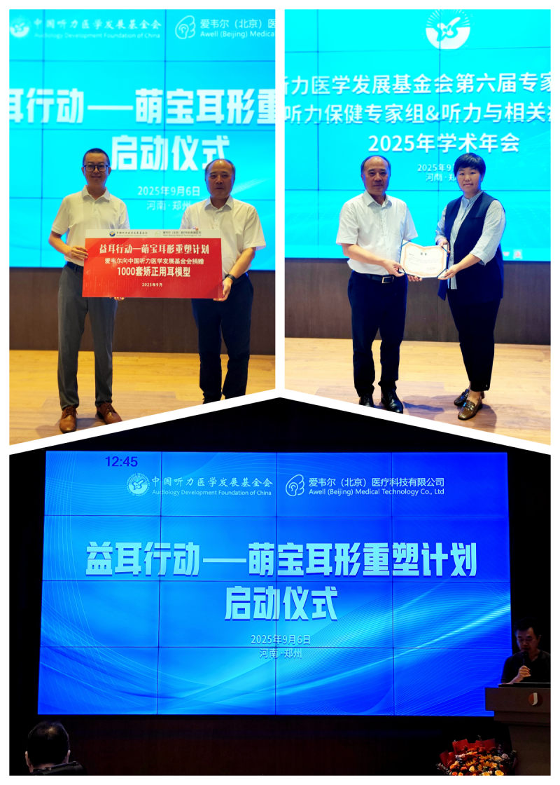 学术会上,我会与爱韦尔(北京)医疗科技有限公司共同发起的“益耳行动-萌宝耳形重塑计划”公益项目正式启动,爱韦尔(北京)医疗科技有限公司向我会捐赠1000套矫正用耳模型。