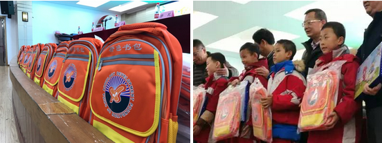 在捐赠现场,“旭康梦想公益基金”向同学们发放了222套“橙色书包”。 这些橙色书包特殊的设计(橙色明视度高,波长达590-610纳米)非常醒目并较易被发现。书包在正面、侧面、背包带上配备反光条,这个具有特殊意义的“醒目符号”来提醒所有的交通参与者注意他们的交通安全。橙色书包具有较强的实用性。