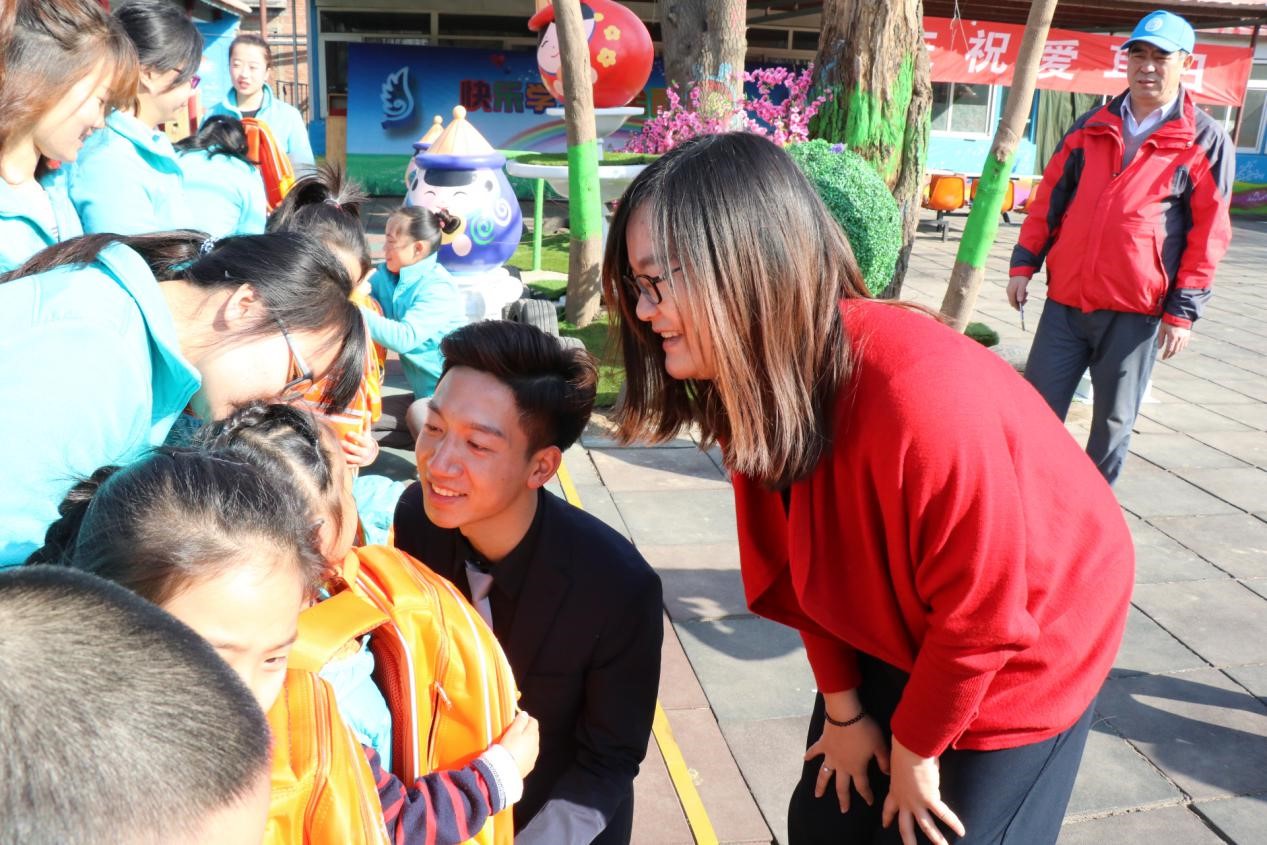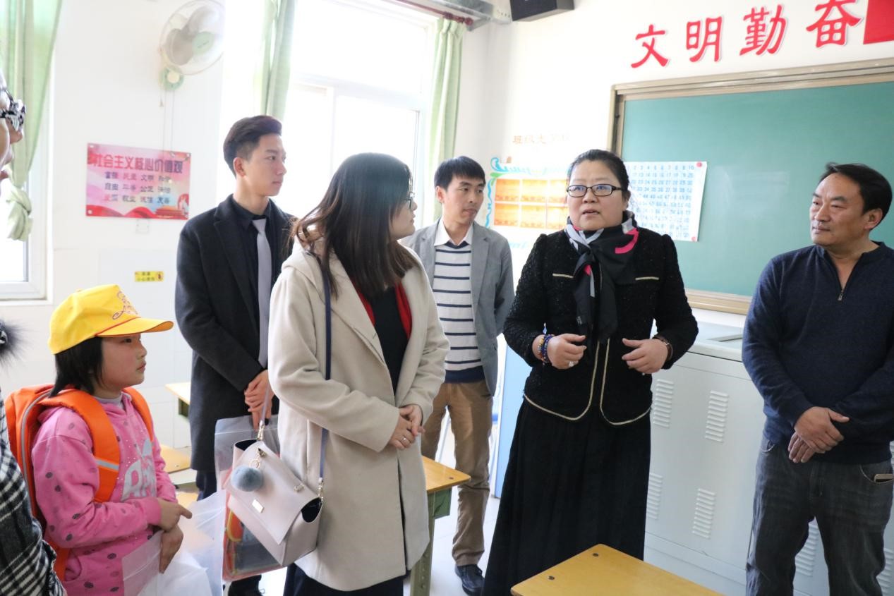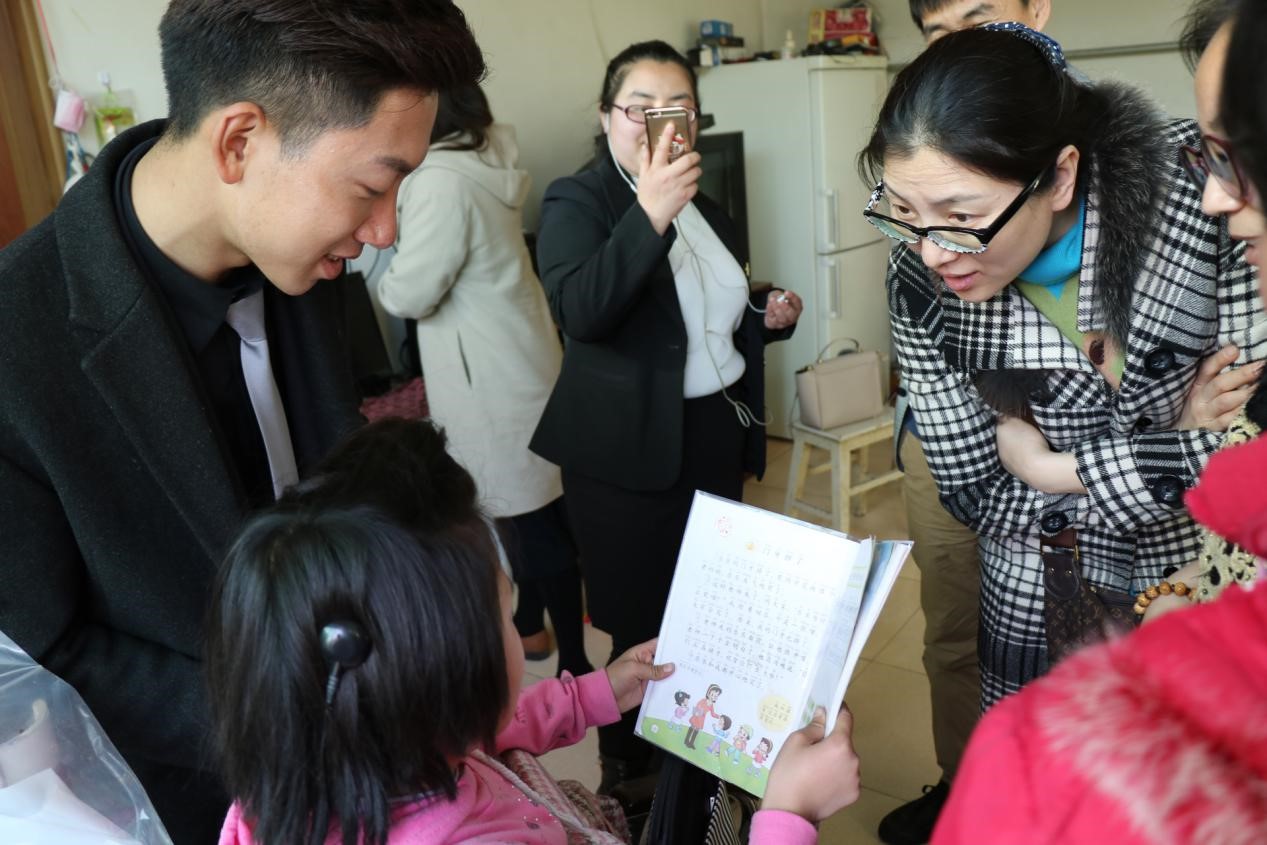 爱心仪式后,与会人员赴通州区大东小学探望随班就读的听障儿童梓龄,了解她的学习、生活情况,为她送去了甜橙版橙色书包,并深入梓龄的家庭看望走访。