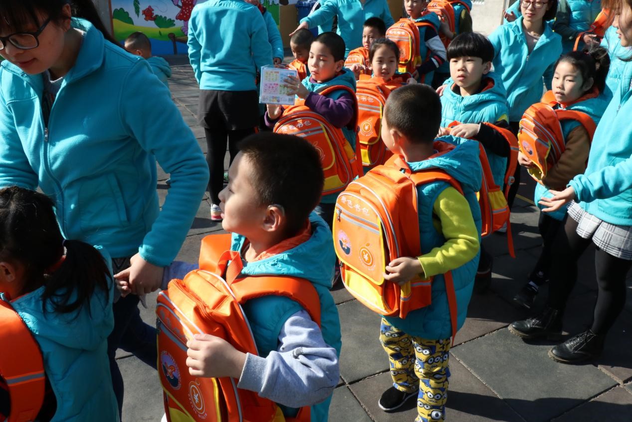 孩子们纷纷背起了书包