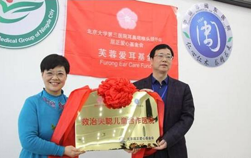 捐赠仪式上,马芙蓉教授还授予了闽东医院“救治失聪儿童合作医院”牌匾。