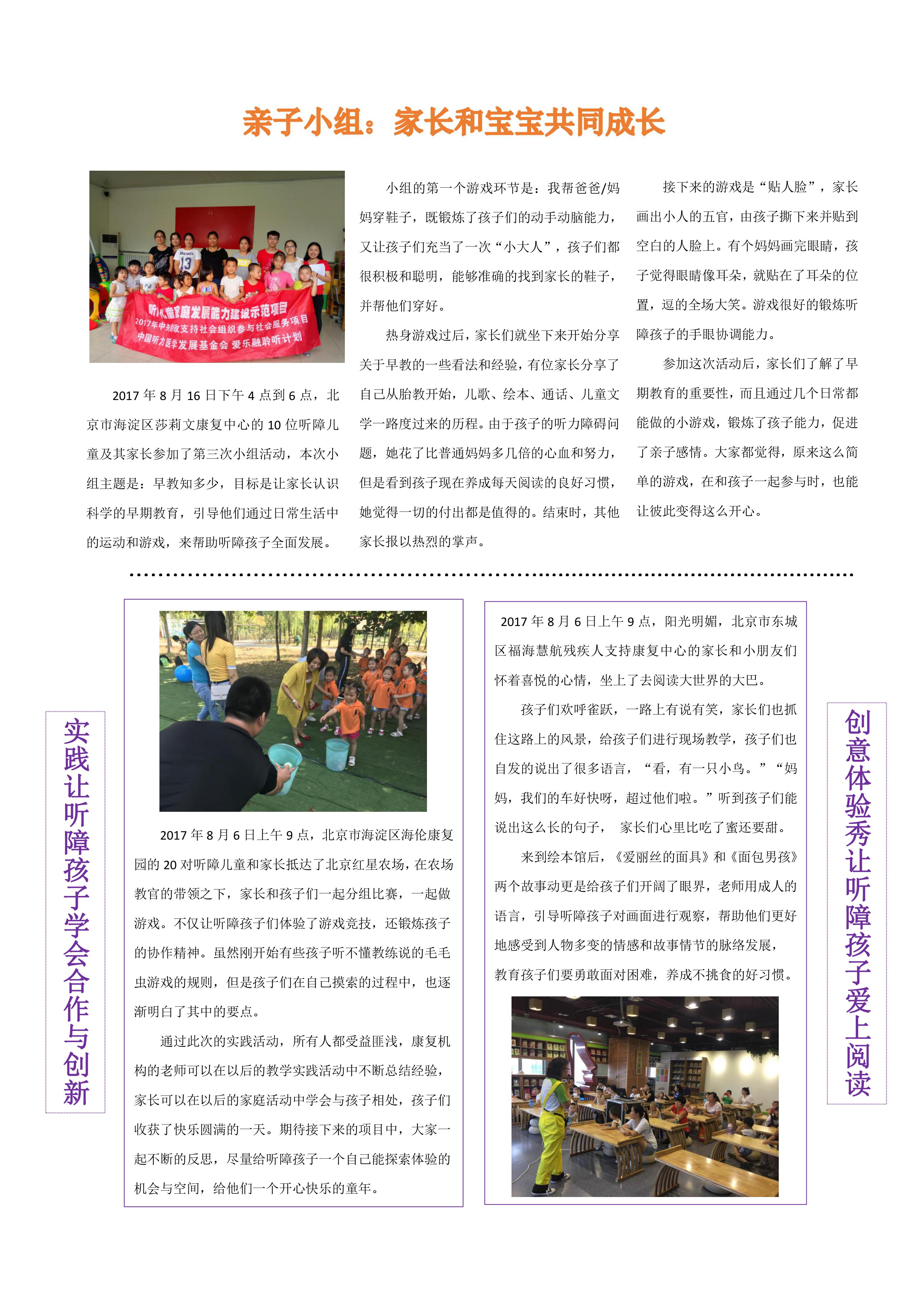 听障儿童家庭发展能力建设示范项目8月份工作简报