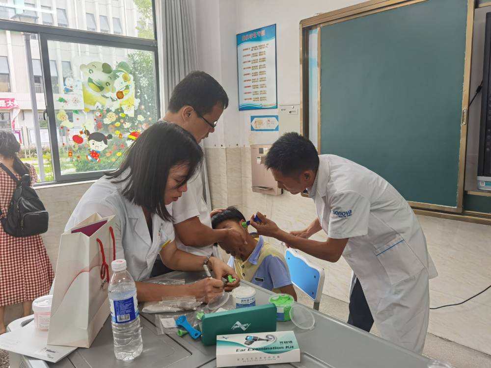 赣州听见爱医疗服务中心派出专业的听力师团队为兴国县参加本次活动的听障儿童提供了听力检查,耳模制作,验配助听器等系列服务,专业,周到,耐心,热情的听力师们,赢得了家长的一致好评。