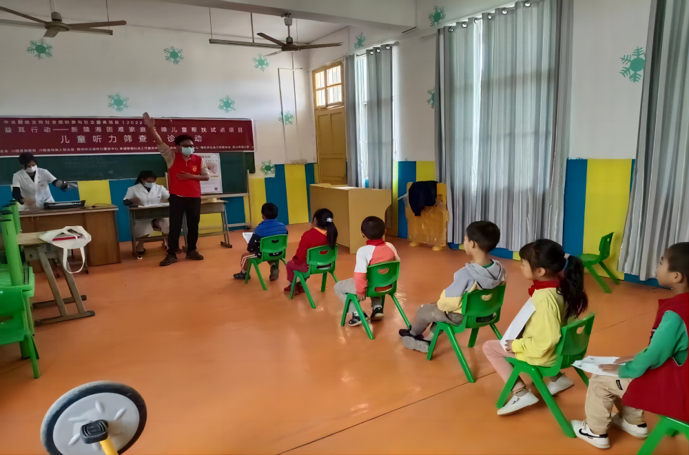 2022-11-01来源:听基会继10月25日走进长冈中心小学后,我会承接的2022年中央财政支持社会组织参与社会服务项目——益耳行动—新赣湘困难家庭听障儿童帮扶试点项目在兴国县持续开展,在幸福家园社会工作服务中心的组织下先后在兴国县社会工作服务中心举办听障儿童物资捐赠及助听器验配活动,在景山希望小学开展听力健康知识科普宣讲及听力筛查义诊活动。本周我们的脚步也不会停止,后续几天将在龙口镇来溪村小学和来溪村来溪利群幼儿园继续开展相关活动。