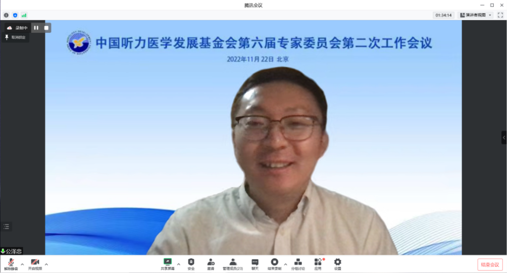 我会龚树生理事长参加会议,对专家委员会成立以来开展的各项工作表示感谢。他表示,在专家委员会的支持下,基金会各项工作稳步推进。期待各位专家围绕听力这个专业领域,开展更全面的工作。更好地服务听力残疾人群,为健康中国的建设携手同心贡献力量。