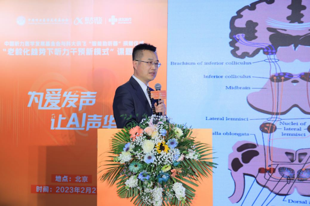 围绕“老龄化趋势下听力干预的困局与突破”,郗昕教授发表了主旨演讲,他提出了三“普”又“合”(普适、普惠、普及又合用)的模式,期待科技的加入能够突破老年听力干预困局,帮助老年人跨越“数字鸿沟”,让老年人享受有声有色的美好生活。