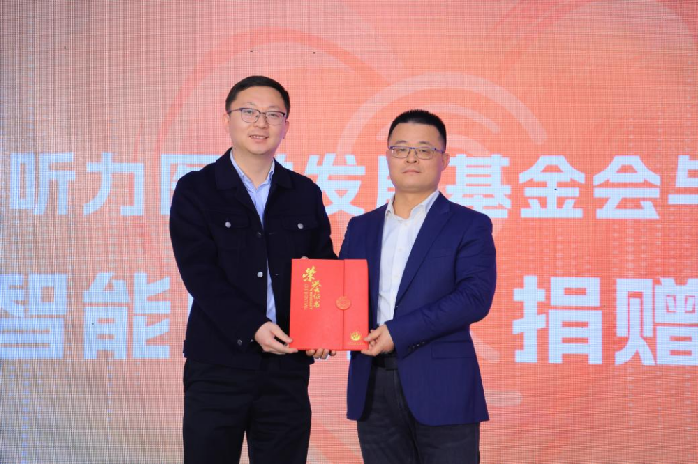 发布会上,讯飞医疗向我会捐赠了讯飞“智能助听器”及善款,我会公泽忠常务副理事长向鹿晓亮执行总裁颁发了荣誉证书。