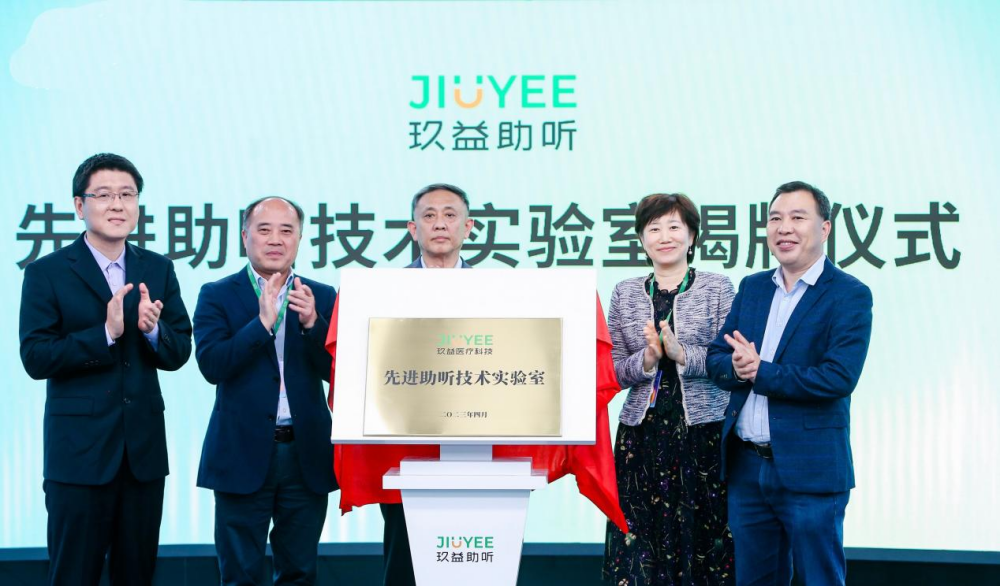 我会理事长龚树生,北京大学国际医院耳鼻咽喉头颈外科主任孙建军教授,首都医科大学附属北京儿童医院耳鼻喉科副主任、听力中心主任刘海红教授及玖益助听部分联合创始人共同为先进助听技术实验室揭牌。