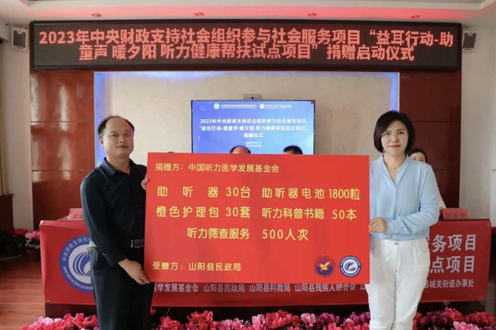 我会向山阳县捐赠助听器、助听器电池、助听设备护理包及科普书籍等物资