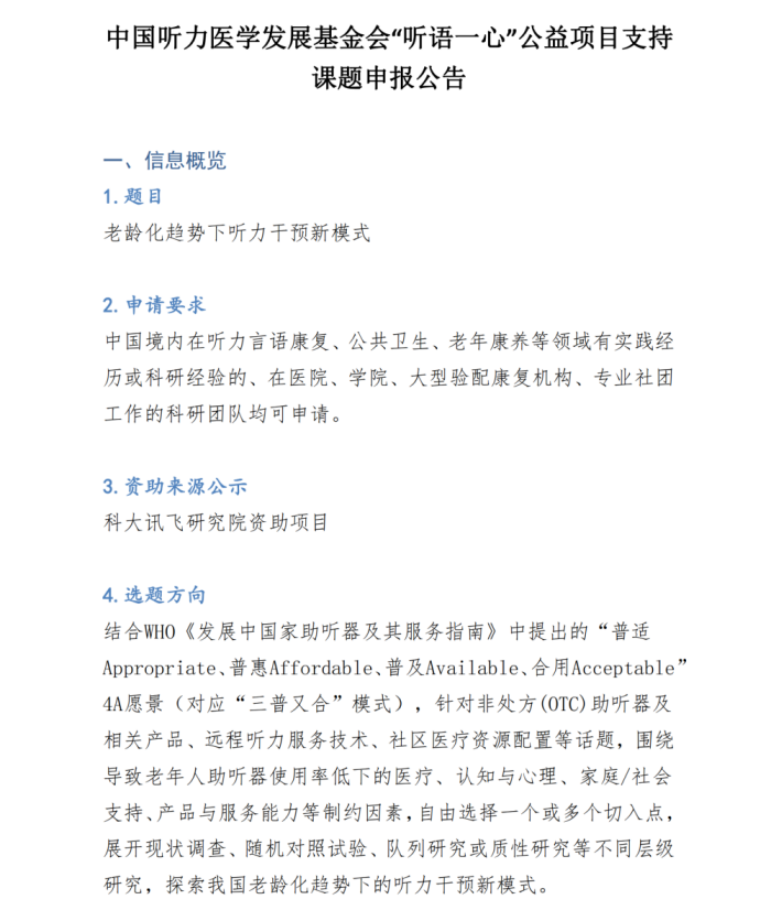 中国听力医学发展基金会“听语一心”公益项目支持 课题申报公告