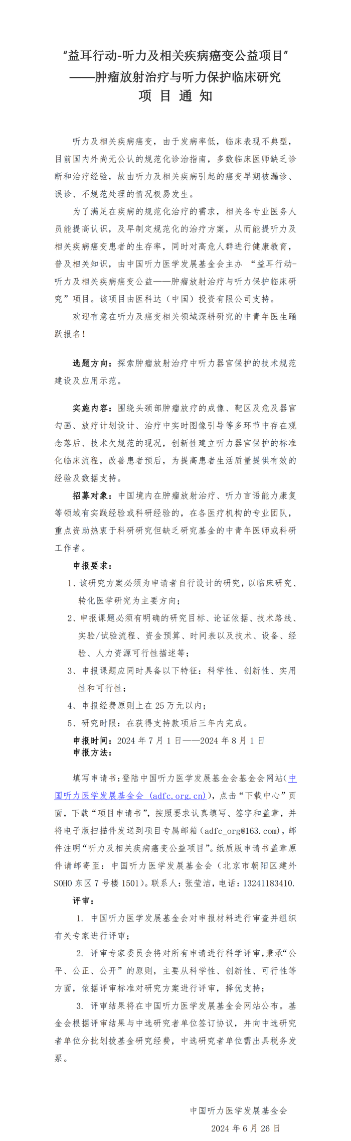 “益耳行动-听力及相关疾病癌变公益项目” ——肿瘤放射治疗与听力保护临床研究 项目通知