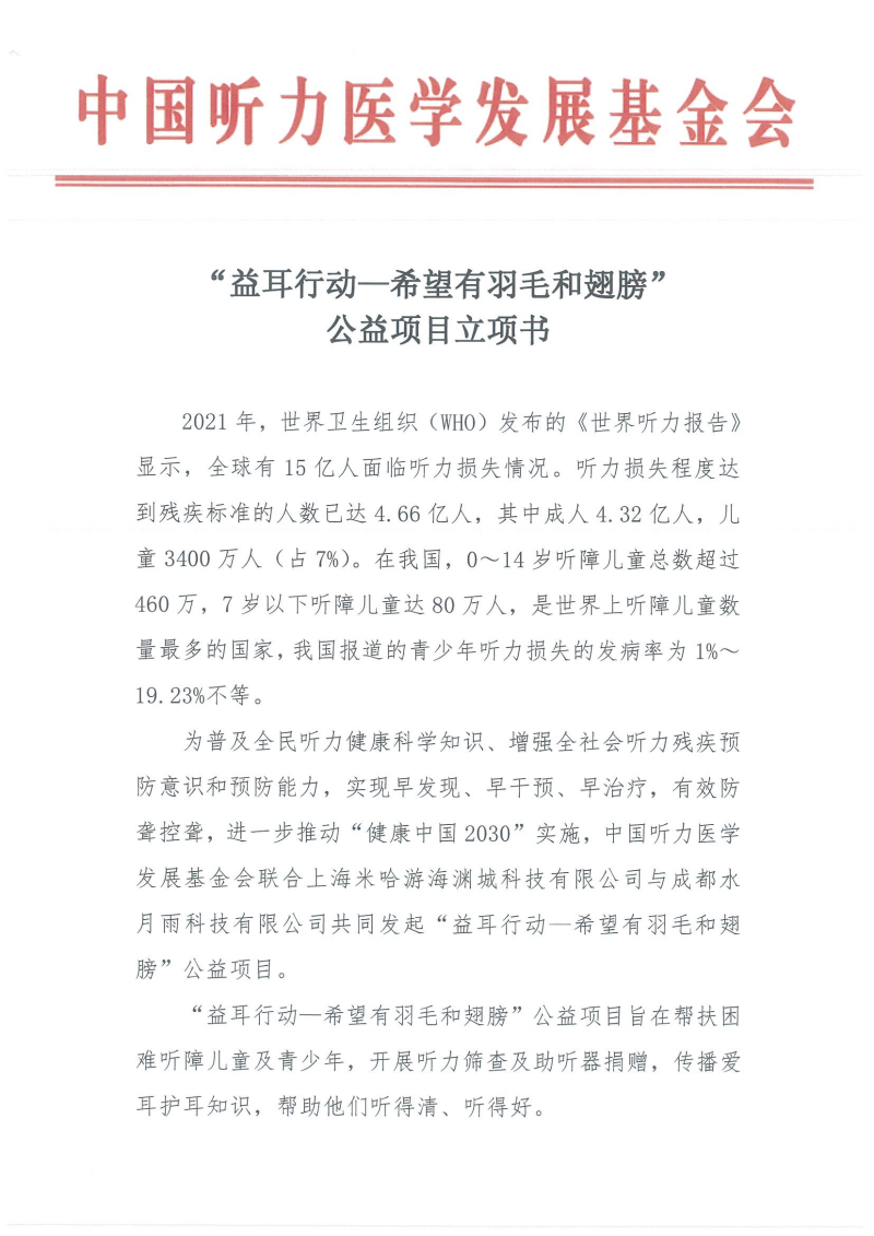 “益耳行动—希望有羽毛和翅膀”公益项目立项书