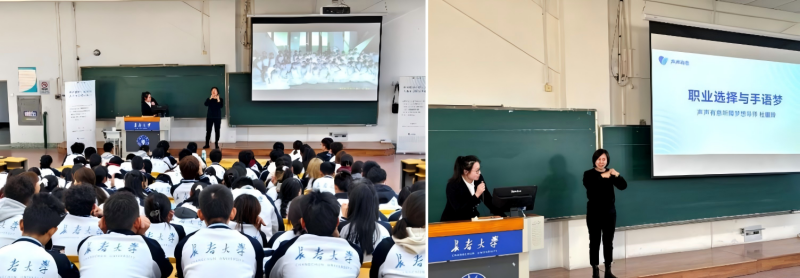活动结束后,“声声有息”公益计划听障梦想导师杜银玲就“人生不设限”为主题进行分享。从自身经历出发,讲述她的手语梦以及如何进行职业选择与规划。