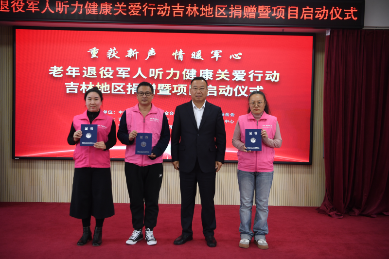 吉林省退役军人事务厅副厅长张元军(右二)向验配师颁发荣誉志愿者证书