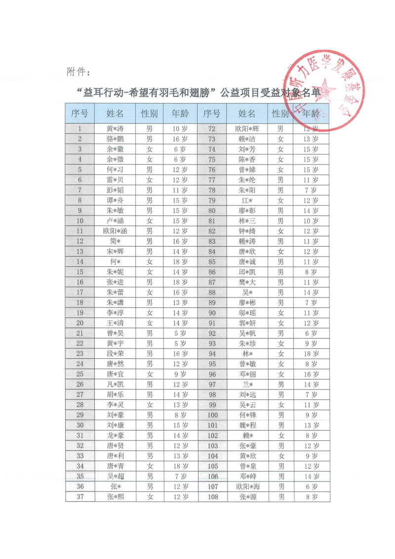 “益耳行动-希望有羽毛和翅膀”公益项目受益对象名单公示