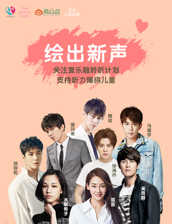 此次由吴克群、苗苗、徐海乔、冯建宇、魏巡、水原希子、迪玛希、郑容和等明星爱心大使与听障儿童将共同推出“绘出新声”公益T恤展开义卖,T恤图案设计来自爱心大使与听障儿童合力创作的画作,义卖所得将用来支持听障儿童的康复教育资助和耳蜗设备维护。