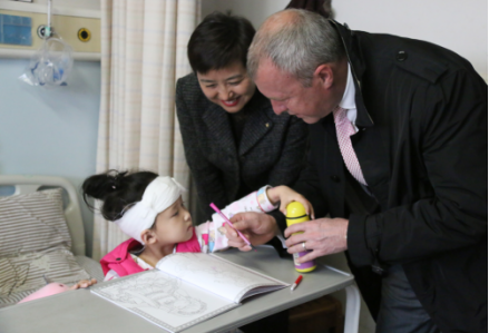 杭州城中香格里拉酒店总经理韦伯翰、驻店经理王艳华看望术后的小姿诺