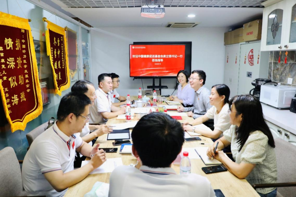 双方围绕党建引领业务开展、基金会工作规范化建设、慈善项目公众筹款方法、人员配备及管理、促进全民健康保健等方面展开深入交流。