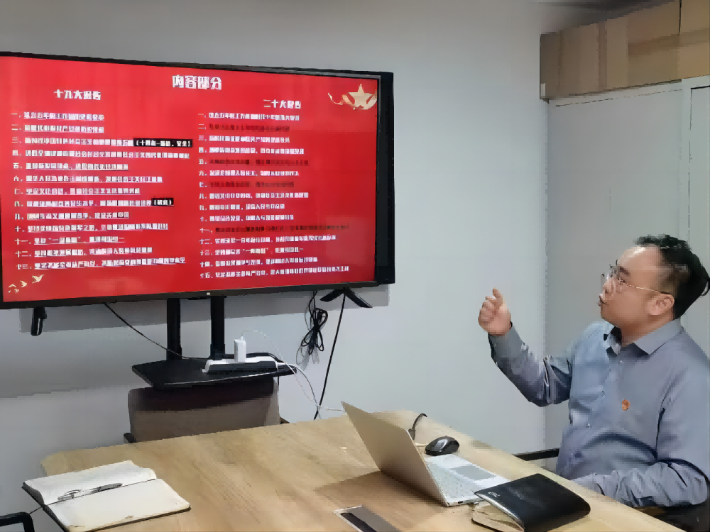 听基会副秘书长、党员廖沙夫同志将学习党的二十大报告与党的十八大、十九大报告精神相对照,结合时政热点就二十大报告中“新时代十年的伟大变革”、“马克思主义中国化时代化”、“着力推动高质量发展”等内容的学习体会进行了交流分享。