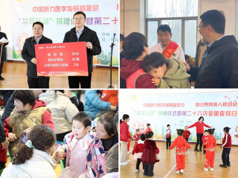 我会与唐山市残疾人联合会共同举办“益耳行动”助听设备捐赠仪式暨爱耳日主题活动。我会向唐山市残疾人联合会捐赠助听器、助听设备护理包、云塔无线听力设备等物资,助力听障人士回归有声世界。